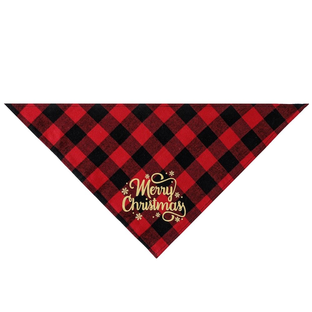Świąteczne bandany dla psa: Klasyczny wzór w kratkę ze złotym wzorem „Wesołych Świąt”, odpowiedni zarówno dla dziewczynek, jak i chłopców. Idealne na święta Bożego Narodzenia, sprawią, że Twój pupil będzie wyglądał modnie i atrakcyjnie w okresie świątecznym.