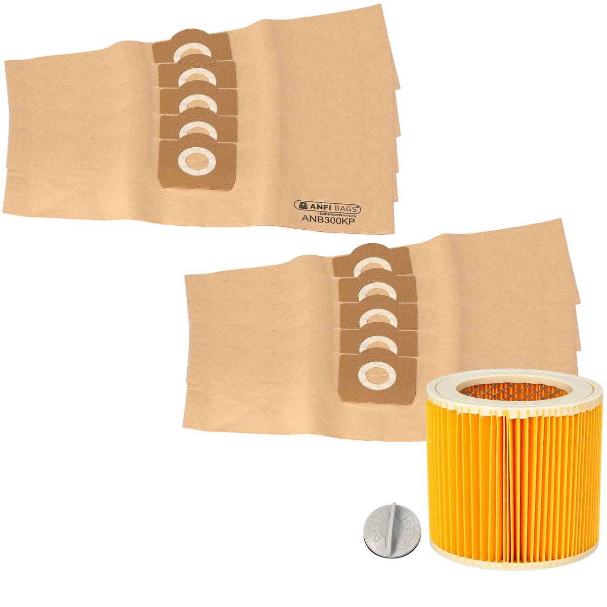 Zestaw worków wraz z filtrem przeznaczonych głownie do odkurzaczy Karcher WD 3, MV 3, SE 4001