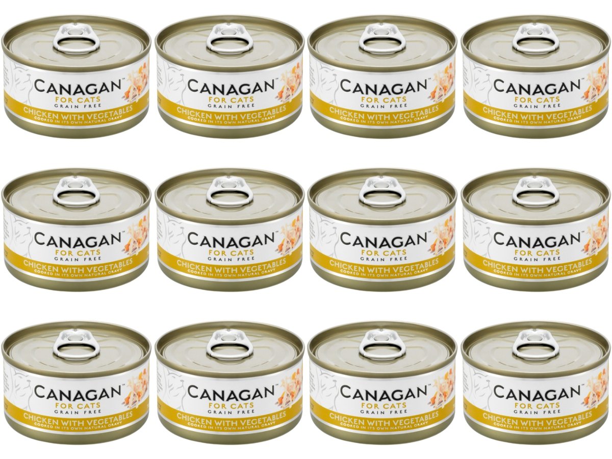 12x Canagan Fresh Chicken with Vegetables 75g – Karma mokra dla kota Naturalna, bez zbóż Kurczak z Warzywami Praktyczny zestaw 12x75g – smak: kurczak. Wygodne rozwiązanie do codziennego ka ...