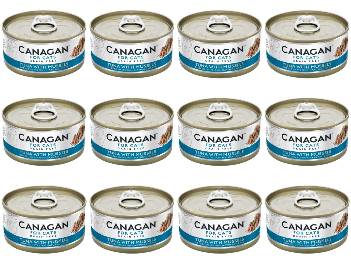 12x Canagan Tuna with Mussels 75g – Karma mokra dla kota Naturalna, bez zbóż Tuńczyk z Małżami Praktyczny zestaw 12x75g – smak: tuńczyk, małże. Wygodne rozwiązanie do codziennego karmienia. ...