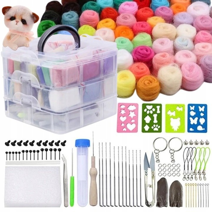 ⭐ W komplecie znajduje się także aż 36 sztuk kolorowej wełny czesankowej o gramaturze 3g.