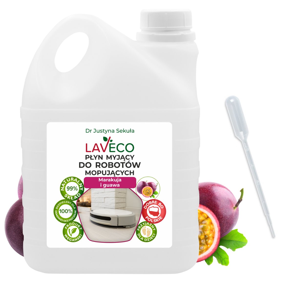 Naturalny płyn myjący do robotów mopujących - marakuja i guawa - 2 l Postaw na naturalne płyny do robotów mopujących, które dbają o bezpieczeństwo domowników i środowiska. Płyn LAVECO ...