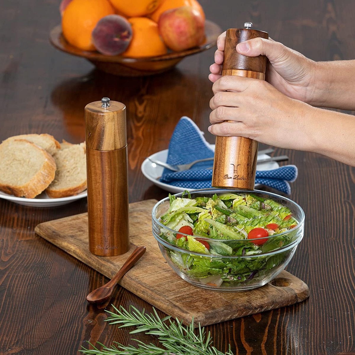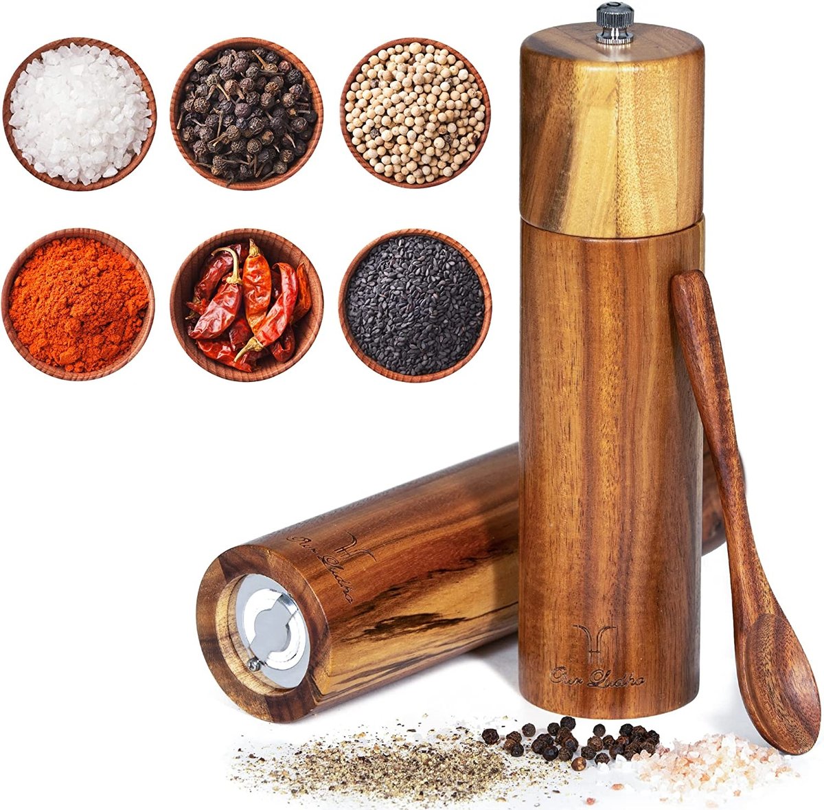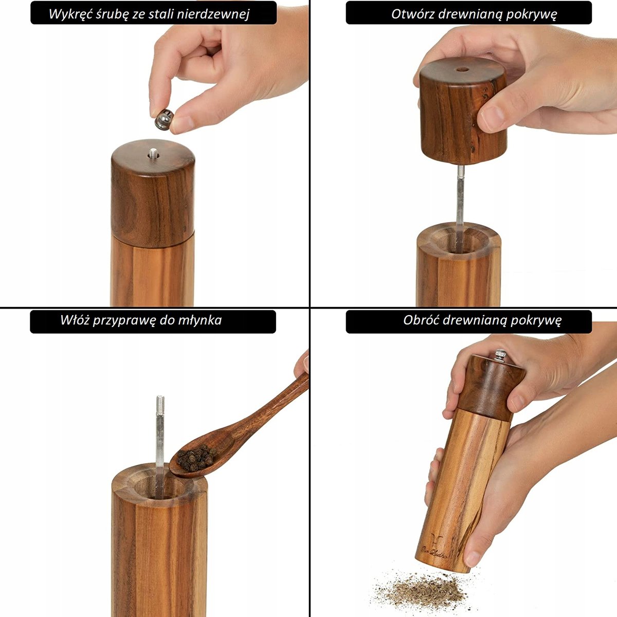 Właśnie zrecenzowałem 2×Ręczny Drewniany Młynek Do Soli I Pieprzu Zestaw Z Łyżką
