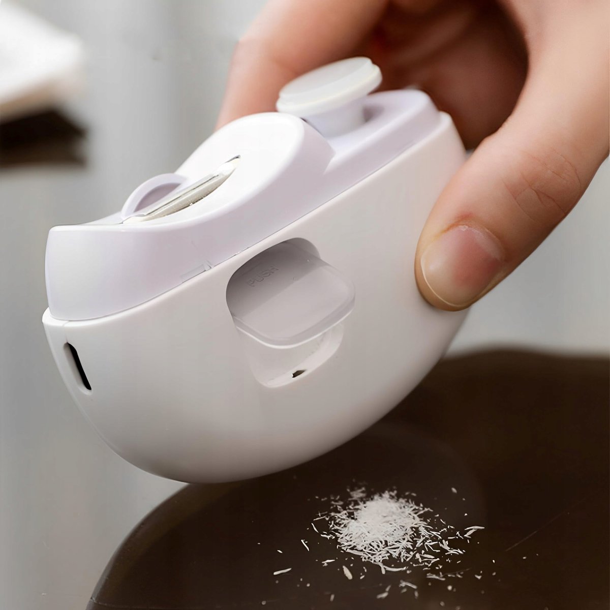 ✅Dzięki temu elektrycznemu obcinaczowi do paznokci nie musisz się martwić, że obcięte paznokcie będą latać wszędzie lub tracić dużo czasu na ich szukanie. Ten obcinacz do paznokci posiada wbudowany schowek na zanieczyszczenia. Podczas użytkowania obcinacz automatycznie zbiera obcięte zanieczyszczenia do schowka.