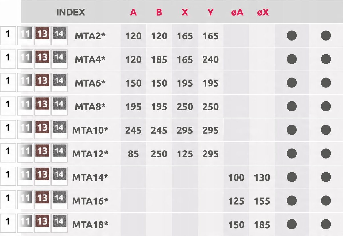 Kratki wentylacyjne serii MTA wykonane są w całości z blachy ocynkowanej malowanej proszkowo. Wyposażone są w siatkę przeciw owadom. Kratka MTA w odróżnieniu od MT nie posiada kołnierza i jest montowana przy pomocy kołków rozporowych lub kleju montażowego.