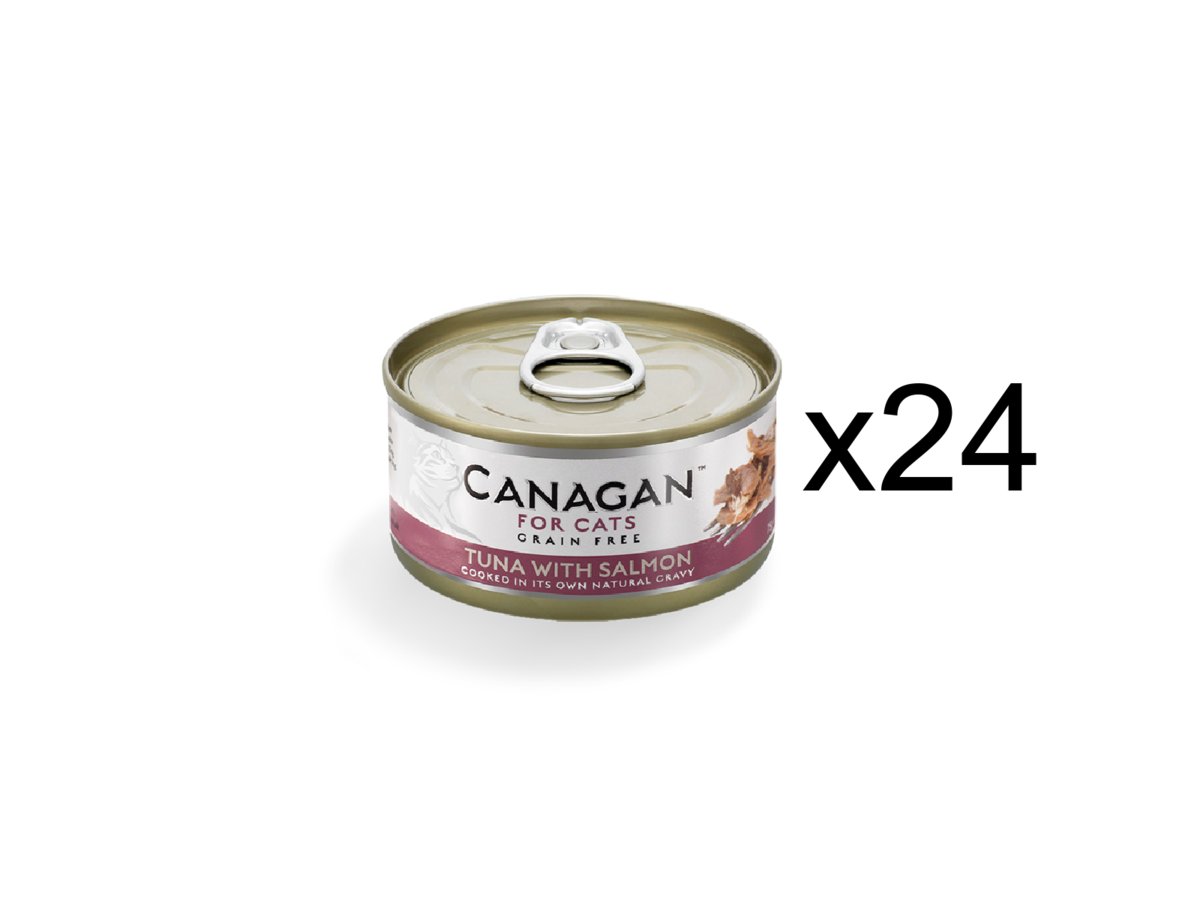 KARMA MOKRA DLA KOTA bezzbożowa bez cukru Canagan tuńczyk łosoś 75g puszka Tuna Salmon Zestaw 24x75g Mokra karma dla kotów z tuńczykiem i łososiem to biologicznie odpowiednie rozwiązanie, ...