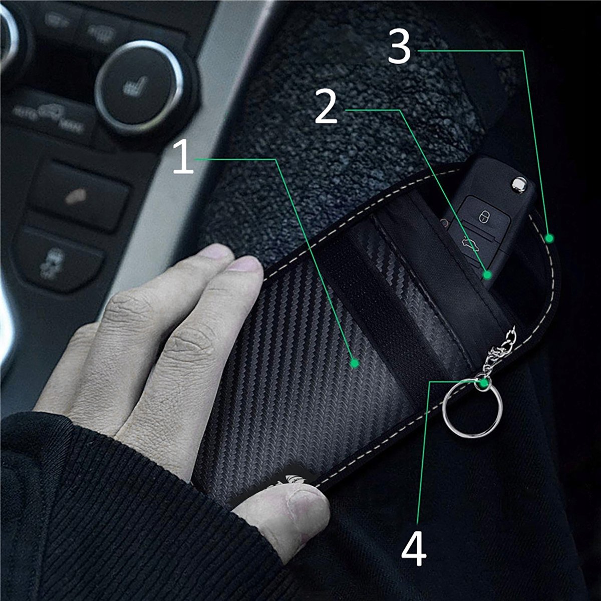 Dzięki 4 warstwom wysokiej jakości materiałów, etui chroni kluczyki samochodowe i motocyklowe przed przechwyceniem częstotliwości radiowych, a także zabezpiecza dane z kart zbliżeniowych, paszportów i uniemożliwia śledzenie telefonów komórkowych. Warstwy te znajdują się zarówno z przodu, jak i z tyłu etui.