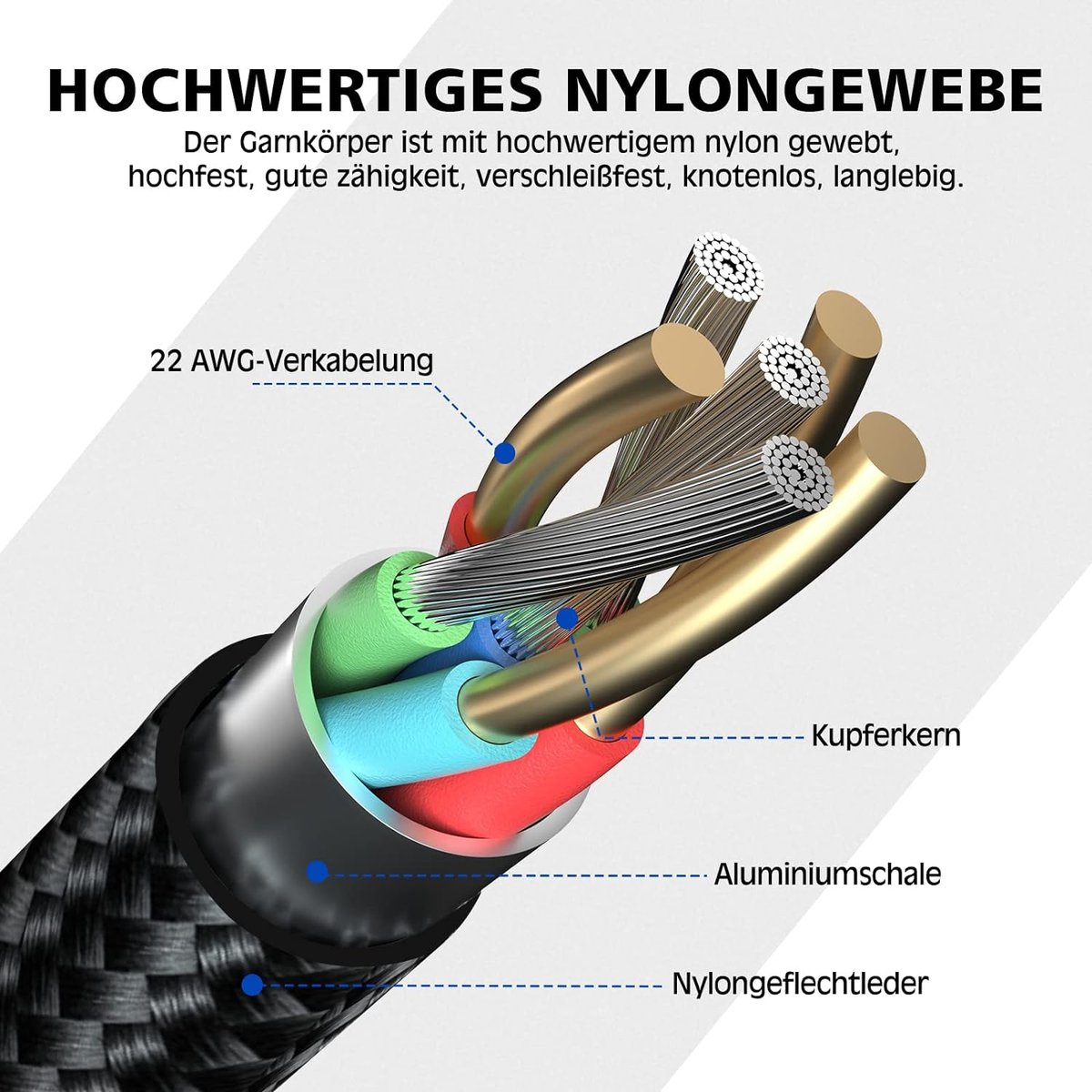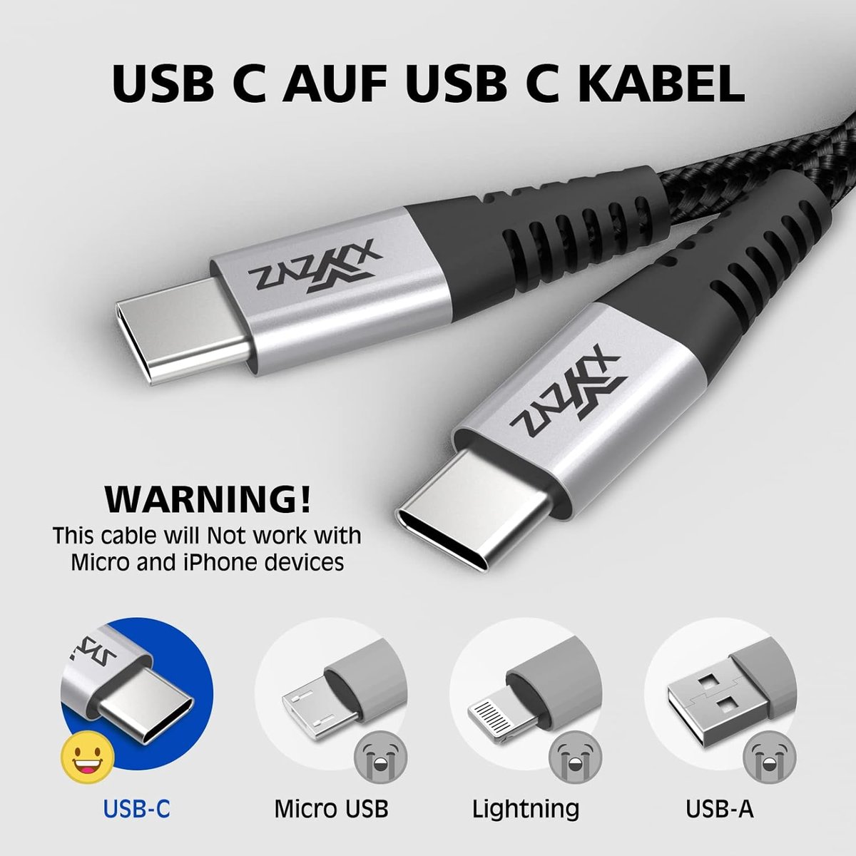Bezpieczny i profesjonalny kabel do szybkiego ładowania: ten kabel USB C na USB-C posiada elektroniczny certyfikat bezpieczeństwa spełniający odpowiednie normy, dzięki czemu można go bezpiecznie używać. Dodatkowo jako obudowę zastosowaliśmy wzmocniony stop aluminium, co gwarantuje, że kabel USB C nie nagrzeje się podczas ładowania telefonu