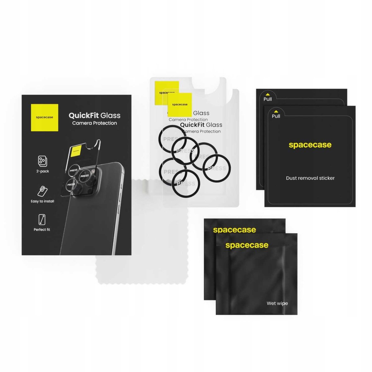 SZKŁO NA APARAT DO IPHONE 15 PRO / MAX OCHRONA OSŁONA APARATU + APLIKATOR 2x szkło na aparat Spacecase QuickFit Glass blackdo iPhone 15 Pro / 15 Pro MaxSzkła hartowane na