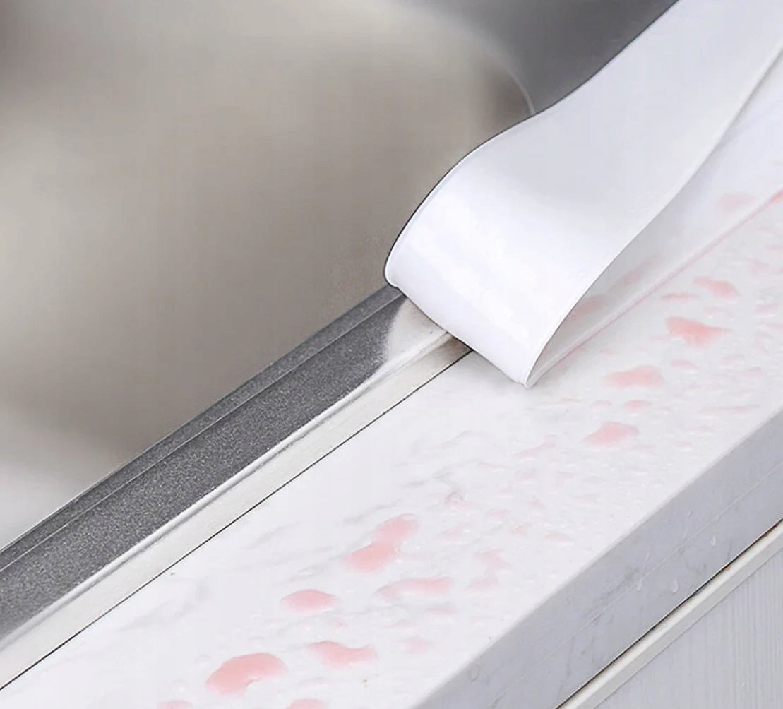 Silikonowa taśma wykończeniowa, uszczelniająca do brodzików, wanien, umywalek, podłóg itp. Taśma przeciwdziała wilgoci, jest wodoodporna i zapobiega powstawaniu pleśni. Świetnie sprawdzi się jako wykończenie kuchni, czy też łazienki.