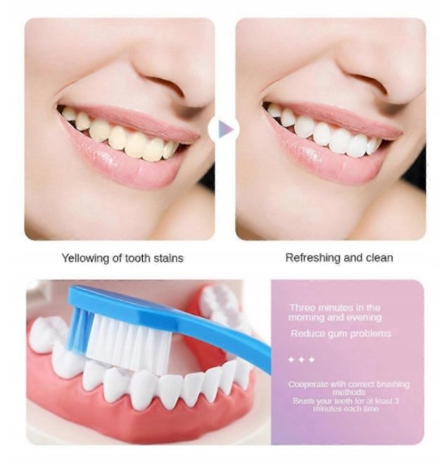 Pomaga przełamać pigmentację powierzchni zęba, zablokować pigmentację, zmniejszyć żółte plamy na zębach.
