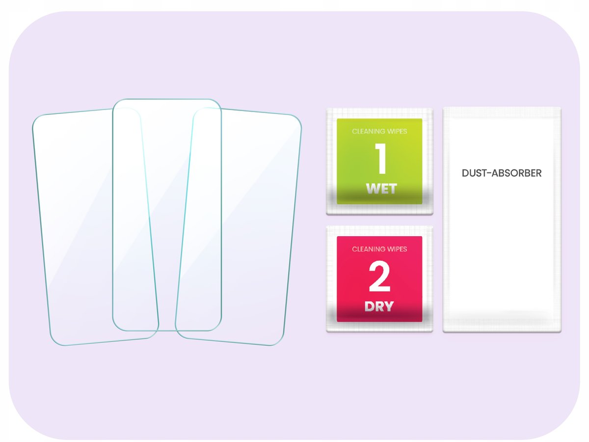 - 3x Sucha ściereczka — do dokładnego wytarcia ekranu przed naklejeniem szkła