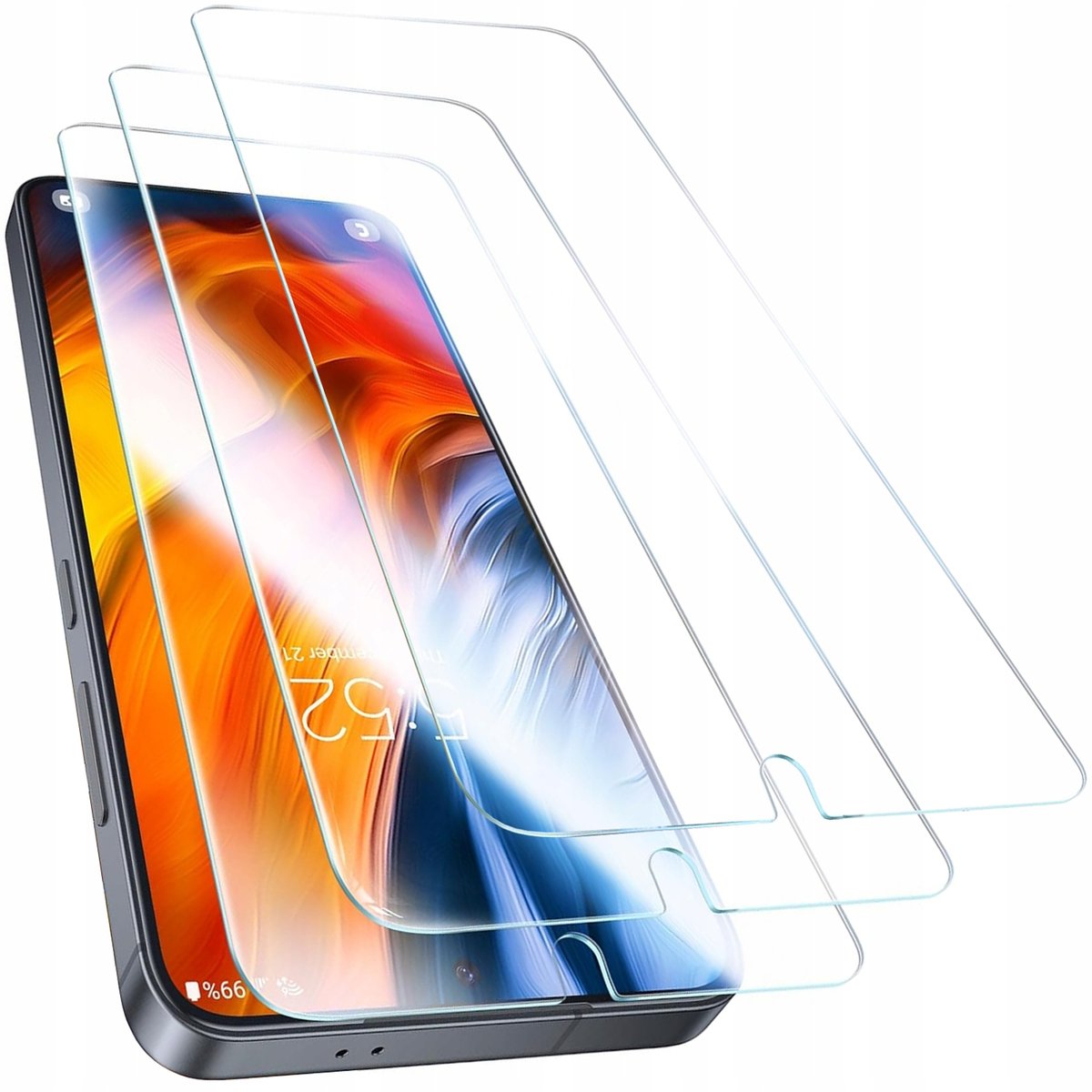 - Szkło zakrywa płaską część wyświetlacza bez zaokrąglonych rantów