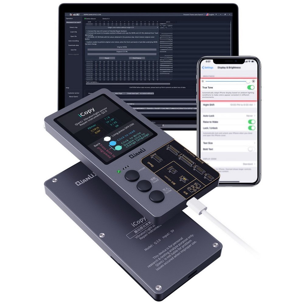 Urządzenie do przenoszenia danych z oryginalnego ekranu iPhone'a na nowy ekran zastępczy. Czynność kopiowania danych z oryginalnego wyświetlacza umożliwia zachowanie funkcji True Tone (automatyczne dostosowywanie barwy i intensywności wyświetlanego obrazu do aktualnego natężenia światła w otoczeniu). Posiada w zestawie dodatkowe płytki do testowania i programowania baterii oraz do testowania kabli Lightning i zestawów słuchawkowych ze złączem Lightning