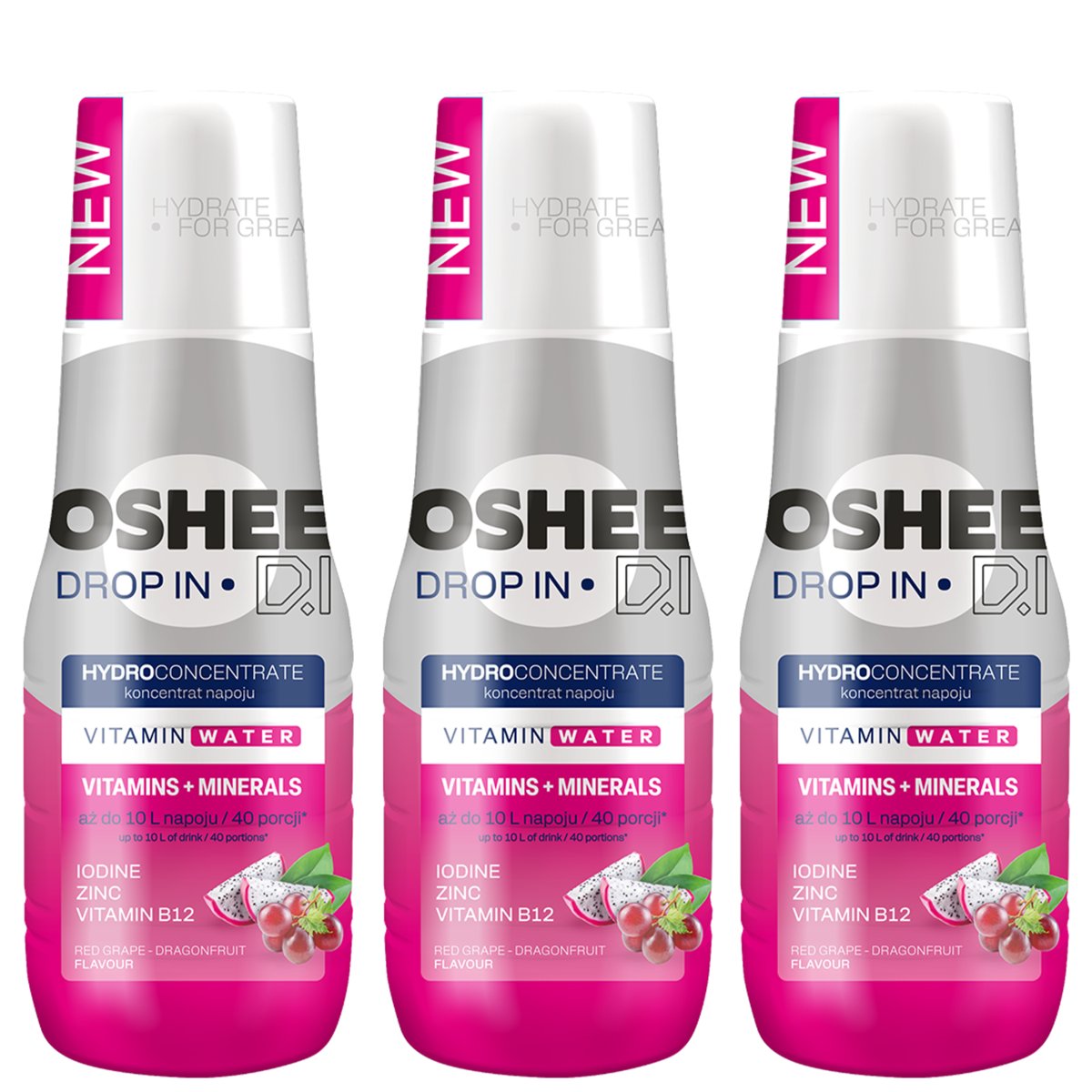 Właśnie zrecenzowałem Hydrokoncentrat OSHEE DROP IN OSHEE, 3 szt. - czerwone winogrono dragonfruit witaminy minerały bez barwników napój do saturatora