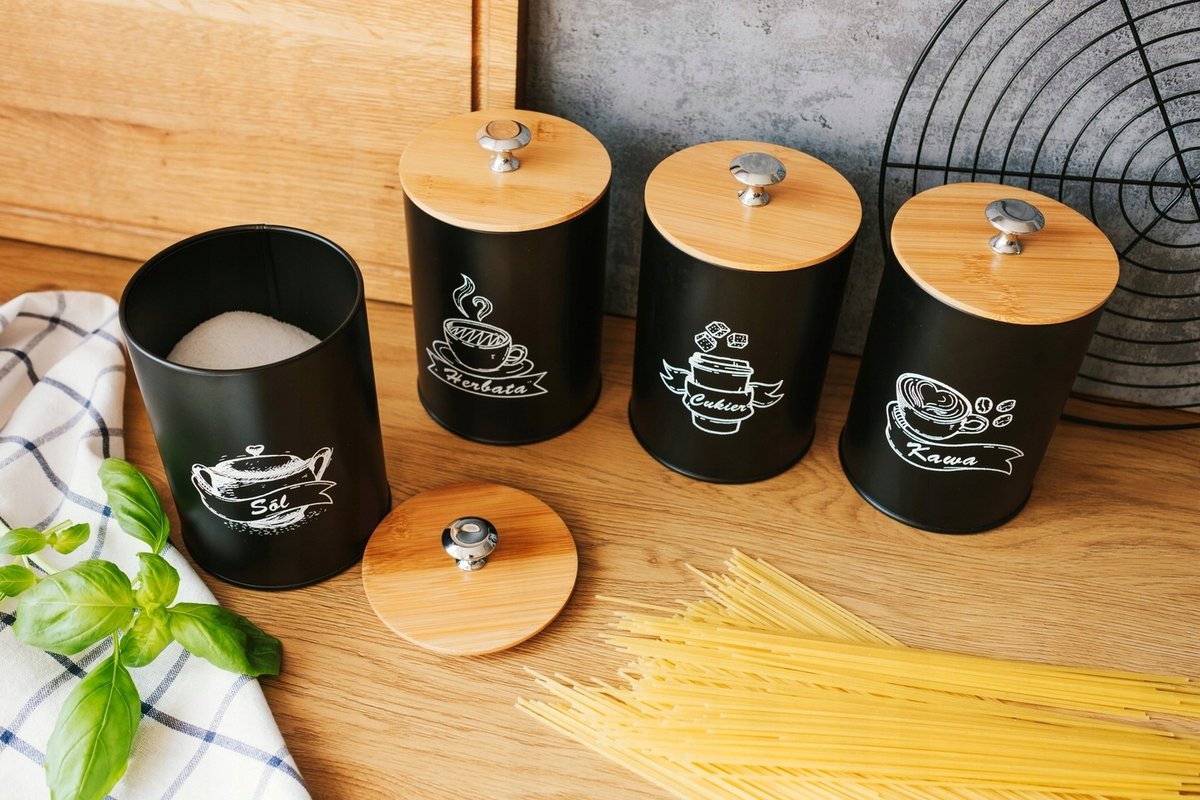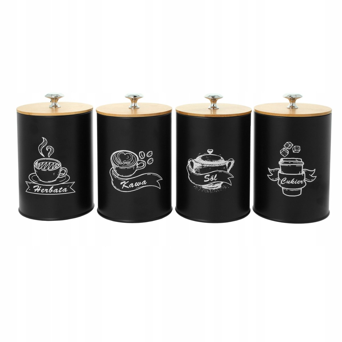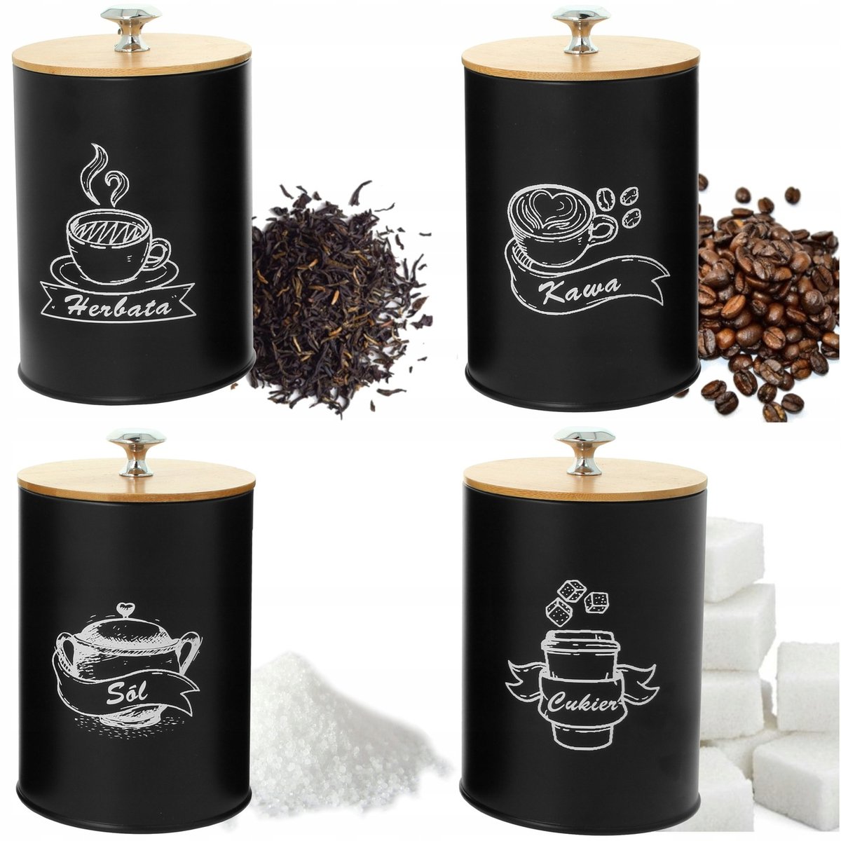 Właśnie zrecenzowałem 4 X Pojemnik Kawa Herbata Cukier Sól Czarny Metalowy Bambus Komplet