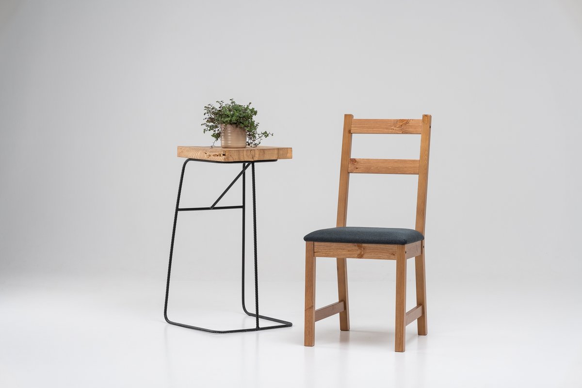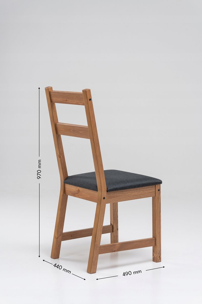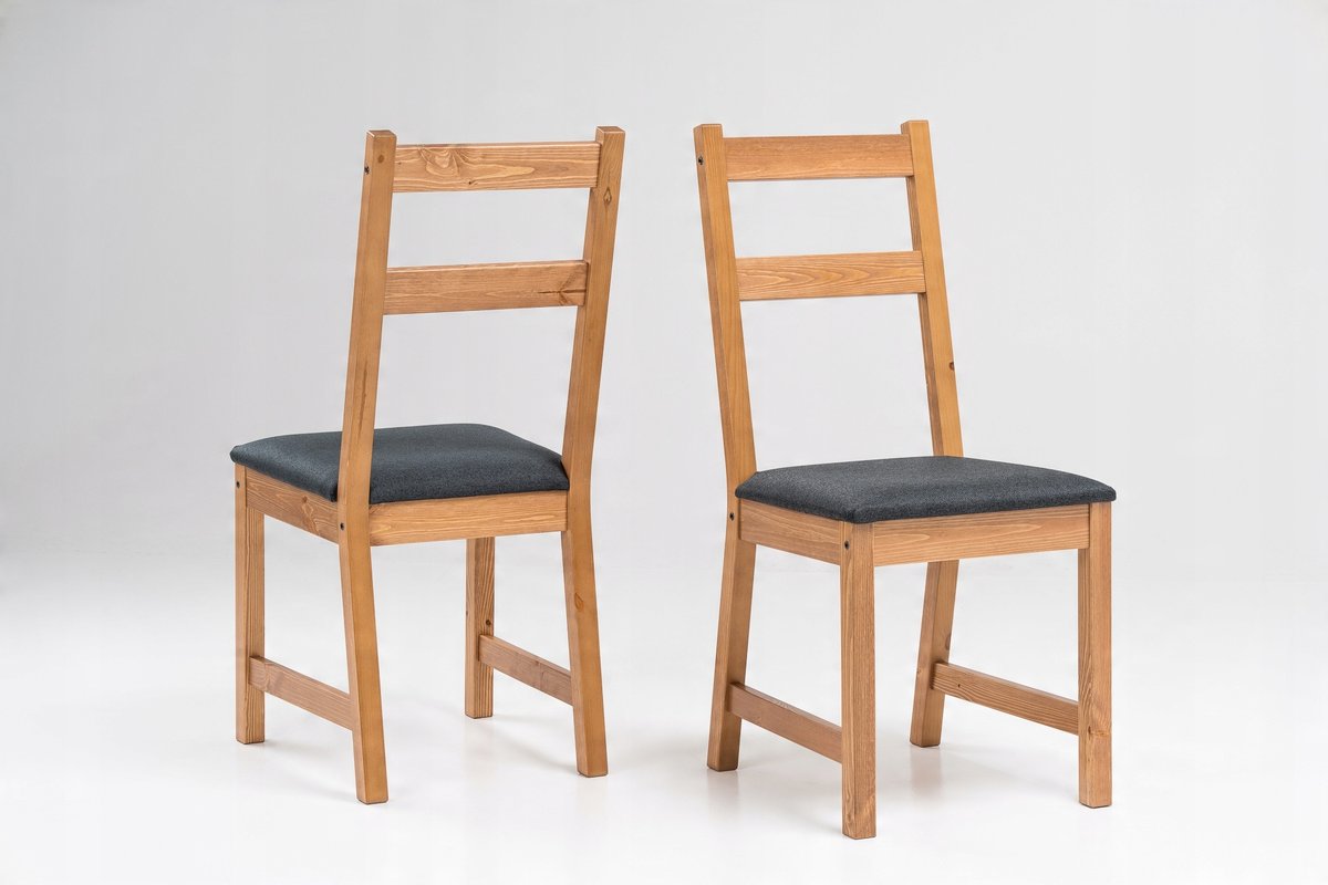 Krzesła wykonane są z litego drewna sosnowego i posiadają tapicerowane siedziska. Ten uniwersalny odcień drewna pięknie komponuje się z różnymi stylami wnętrz kuchennych, dodając naturalnego uroku i elegancji Twojej przestrzeni.