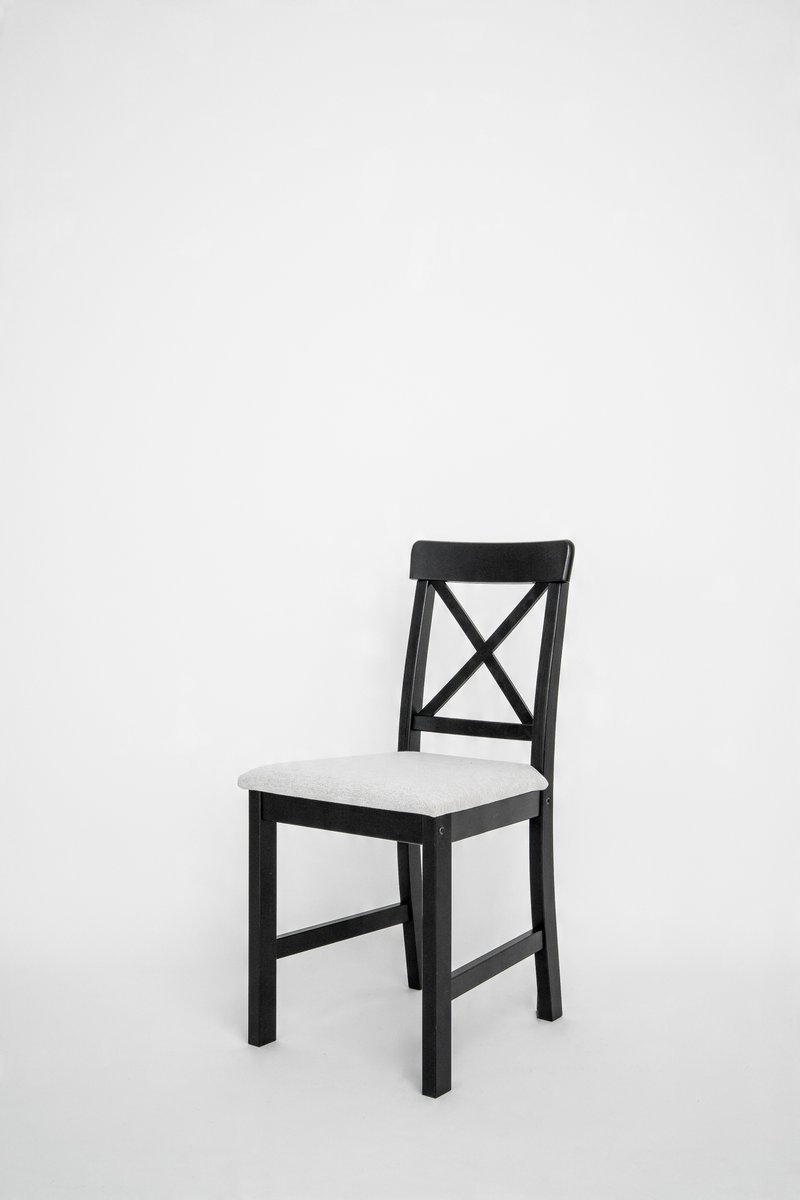 Przedstawiamy zestaw czterech tapicerowanych czarnych krzeseł kuchennych Manu, wykonanych z litego, naturalnego drewna sosnowego. Nasze krzesła łączą w sobie estetykę, komfort i solidność, doskonale wpasowując się nie tylko w każde kuchenne wnętrze, ale także w salonie czy jadalni.