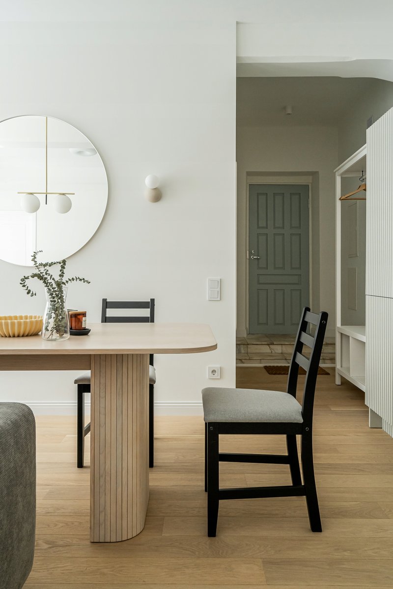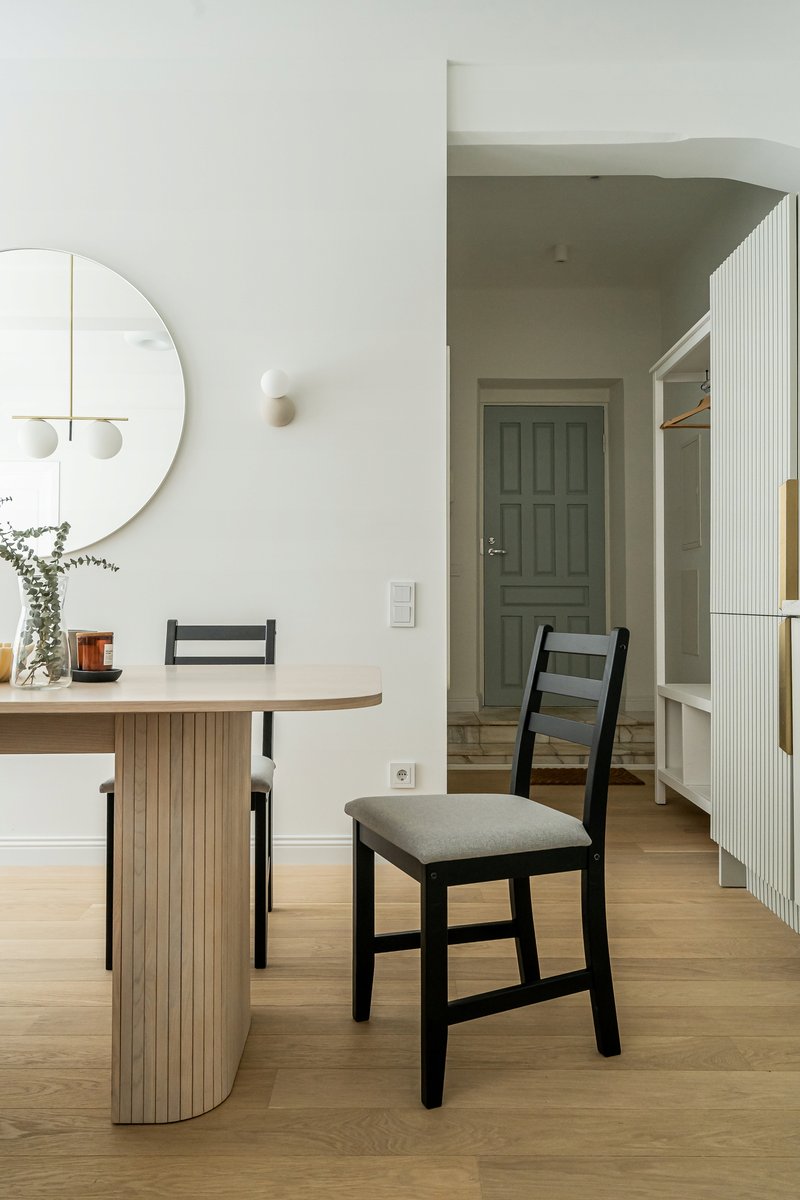 Krzesła wykonane są z litego drewna sosnowego i posiadają jasnoszare tapicerowane siedziska. Ten uniwersalny odcień pięknie komponuje się z różnymi stylami wnętrz kuchennych, dodając naturalnego uroku i elegancji Twojej przestrzeni.