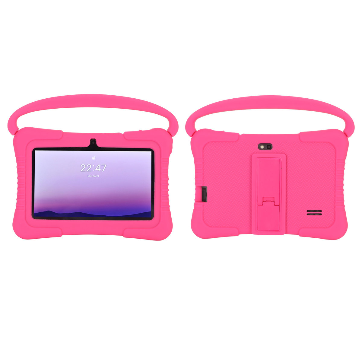 4. Obudowa ochronna: Tablet HD dla dzieci wyposażony jest w antykłapszową obudowę z silikonu z funkcją stojaka, dzięki czemu Twoje dziecko może oglądać filmy bez użycia rąk i zachować odpowiednią odległość, a także z uchwytem dla łatwego przenoszenia.