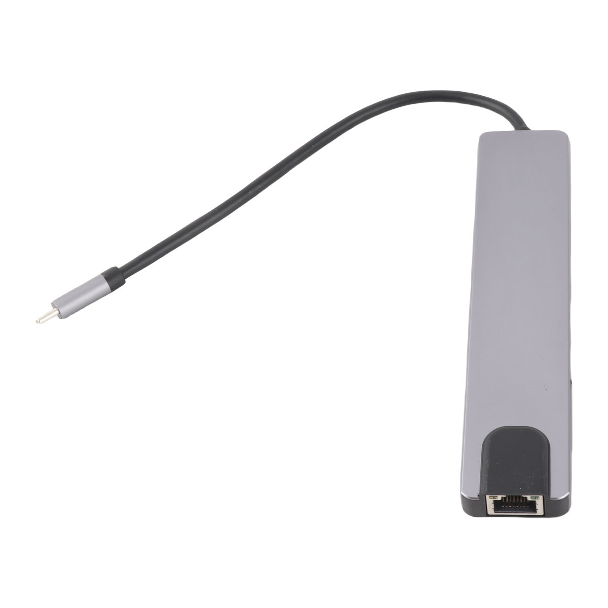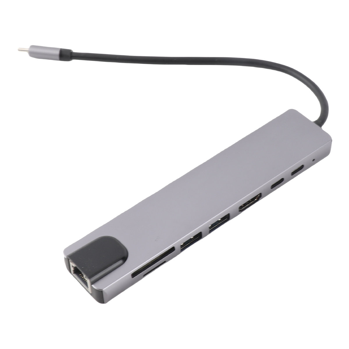 2. Nie wymaga sterowników ani oprogramowania, jest typu plug and play. Przekształca Twój port USB-C w 8 portów: 2 x Type-C, 2 x USB2.0, interfejs High-Definition Multimedia Interface, RJ45, kartę pamięci, kartę magazynującą.