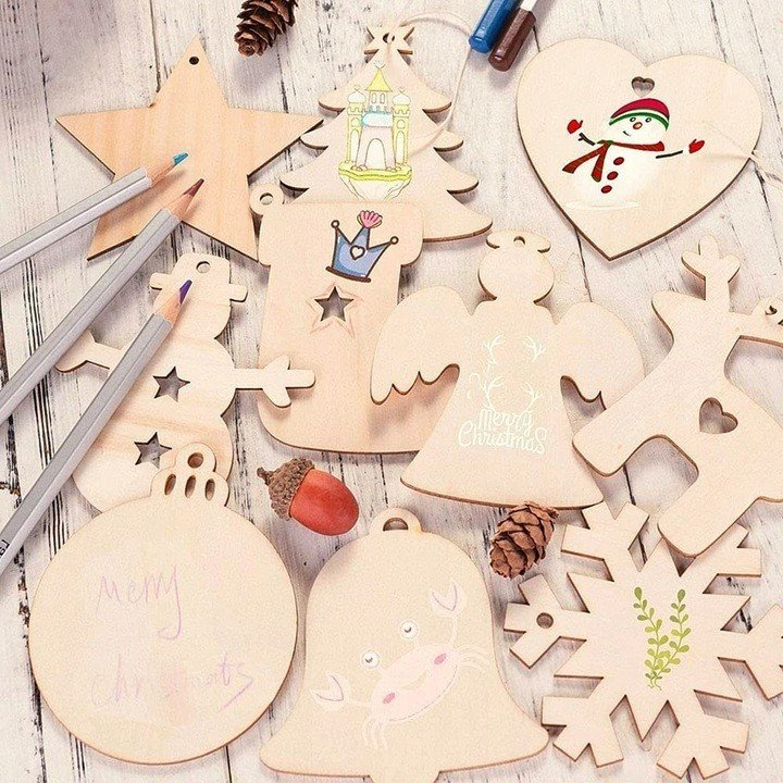 ⭐ Każda drewniana ozdoba choinkowa ma wstępnie nawiercony otwór, dzięki czemu drewniane zawieszki można wygodnie zawiesić na choince.