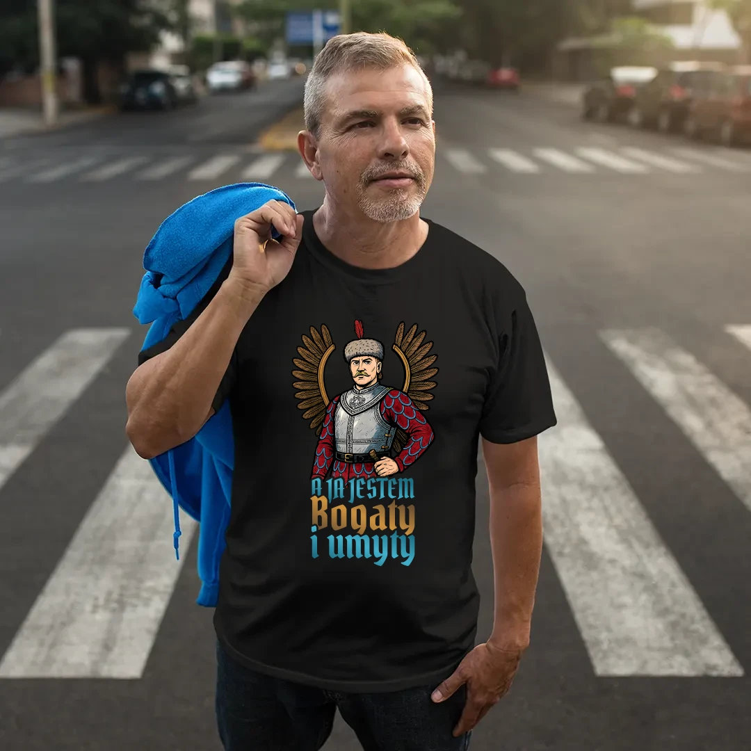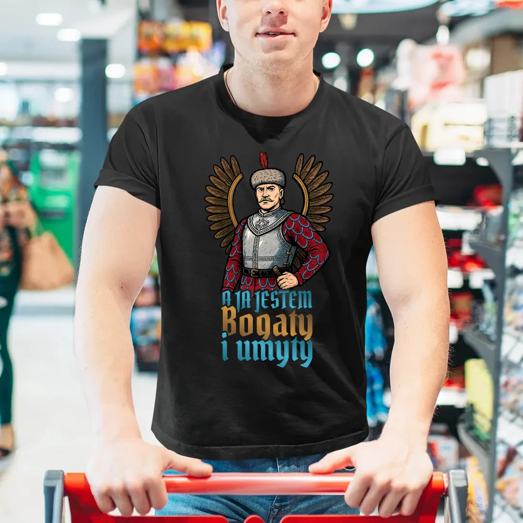 | Nazwa: | A ja jestem bogaty i umyty - męska koszulka na prezent dla fanów serialu 1670 Rozmiar XS |