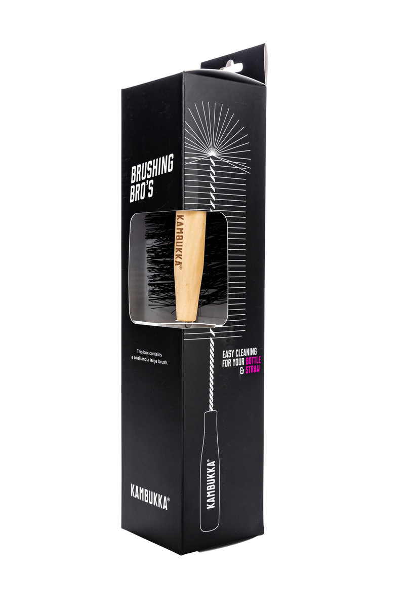 Chcesz, żeby Twój kubek lub butelka były higienicznie czyste? Wystarczy, że będziesz dokładnie mył_ Twoją Kambukkę pomiędzy używaniem. Teraz jest to jeszcze łatwiejsze, dzięki specjalnie zaprojektowanym szczotkom Kamukka Brushing Bro’s. Kubek lub butelkę wystarczy napełnić gorącą wodę z płynem i użyć dużej szczotki do czyszczenia. Żeby wyczyścić trudniej dostępne elementy, takie jak: nakrętka, słomka, ustnik, sięgnij po mniejszą szczoteczkę. Dzięki niej umyjesz wszystkie te zakamarki.