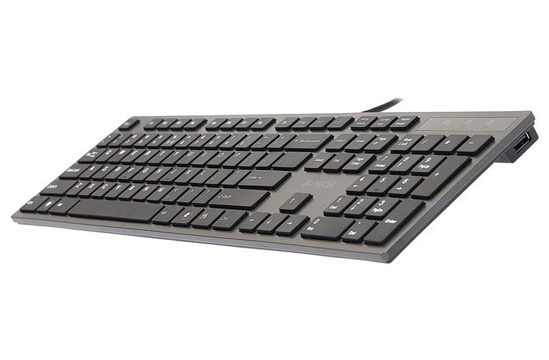 Klawiatura membranowa A4TECH KV-300H z dwoma portami USB i niskoprofilowymi klawiszami, z antypoślizgową konstrukcją.