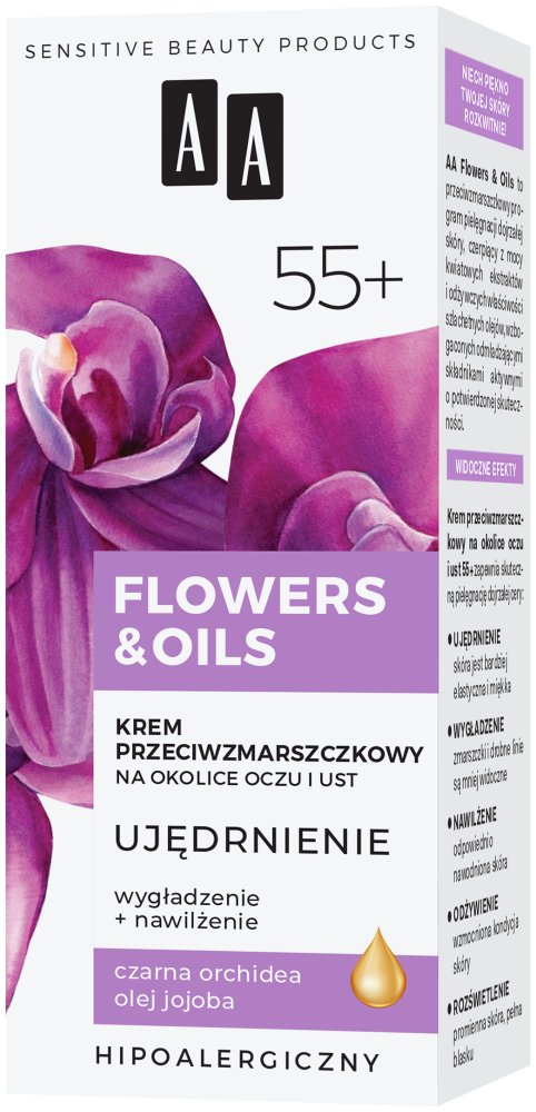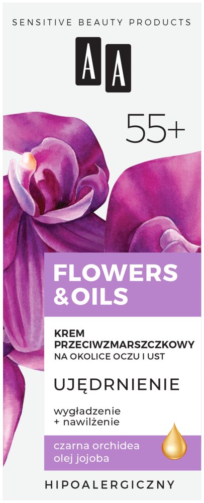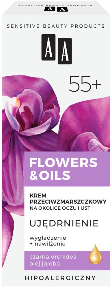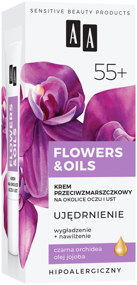 | Nazwa: | AA, Flowers&Oils 55+, Krem przeciwzmarszczkowy na okolice oczu i ust, 15 ml |