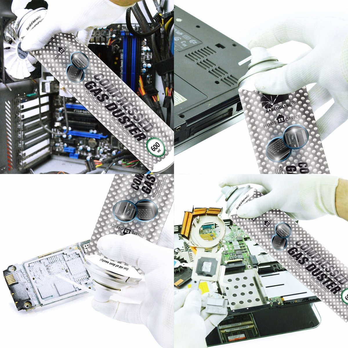 5 x AABCOOLING Home&Office Compressed Gas Duster 600 ml - co to za produkt? Preparat zawierający mieszaninę ekologicznych gazów służący do usuwania kurzu, zabrudzeń, płynów i wszystkich innych ...