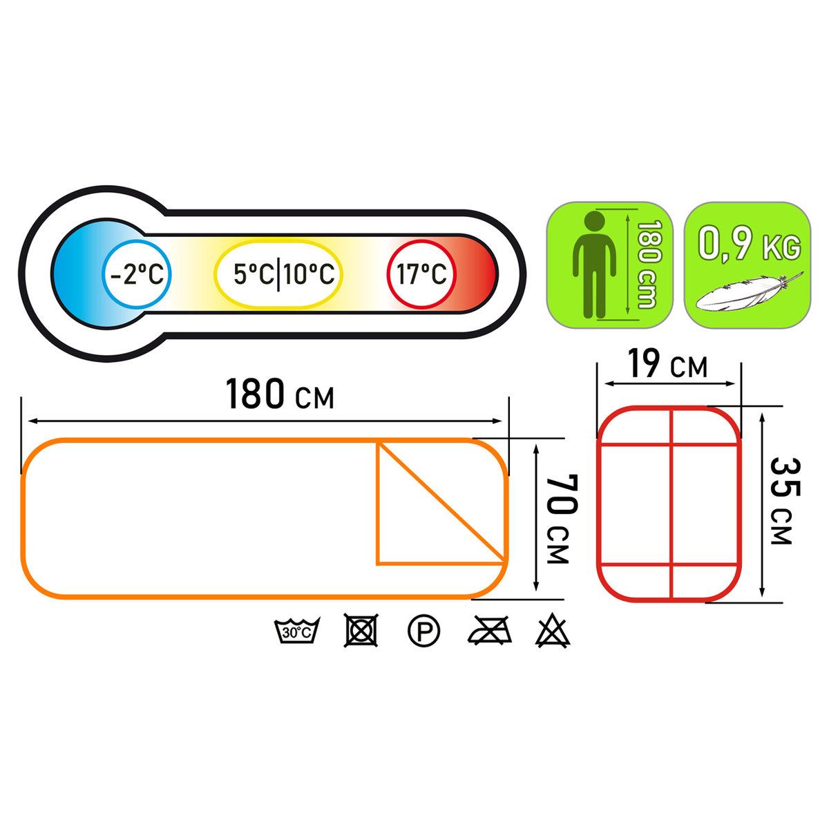 Zalety produktu Temperatura użytkowania Temperatura komfortu: 5-10°C | Temperatura graniczna: -2°C Jakość snu Wymiary: 180 x 70 cm | Suwak na całej długości Łatwość transportu ...