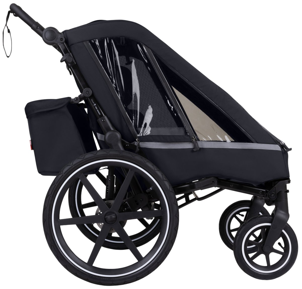 Zapewnia kompleksową ochronę dzięki moskitierze, osłonie przeciwdeszczowej i regulowanemu daszkowi przeciwsłonecznemu z filtrem UPF 50+.