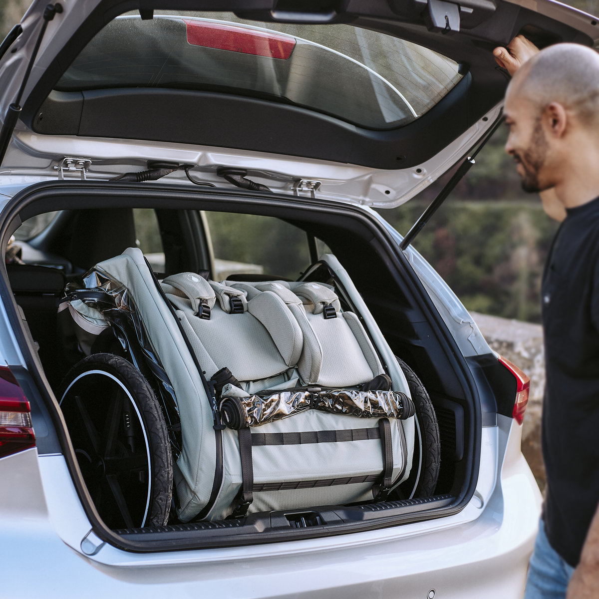 Dzięki składanym przednim kołom, które można zdjąć - oraz wyjątkowo kompaktowemu systemowi składania - zmieści się ona nawet w bagażnikach samochodowych z ograniczoną ilością miejsca.