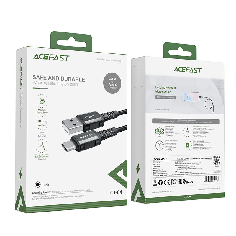 | Nazwa: | Acefast kabel USB - USB Typ C 1,2m, 3A czarny (C1-04 black) |