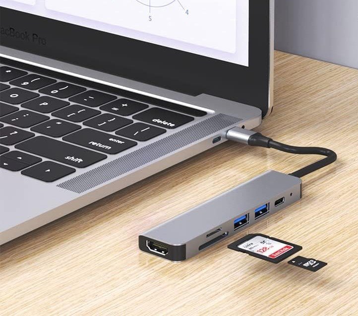 Właśnie zrecenzowałem Adapter 6w1 USB-C HDMI 4K30hz USB C USB3.0 USB2.0 + SD/TF Just link hub