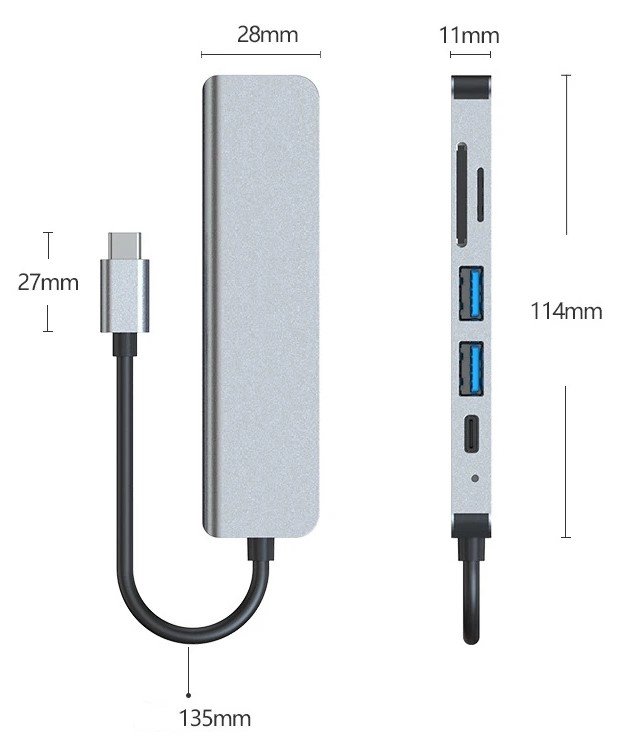 | Nazwa: | Adapter 6w1 USB-C HDMI 4K30hz USB C USB3.0 USB2.0 + SD/TF Just link hub |