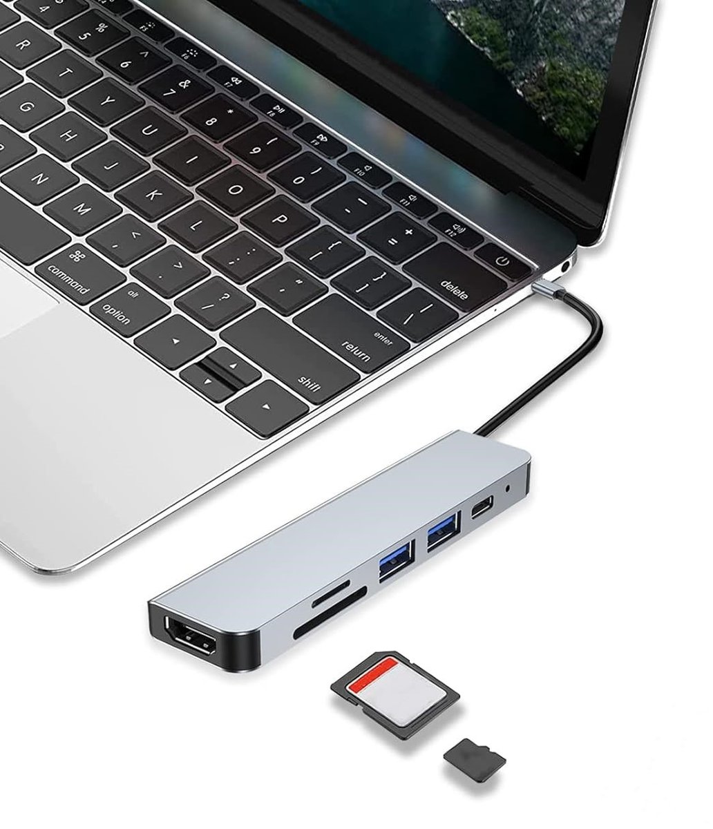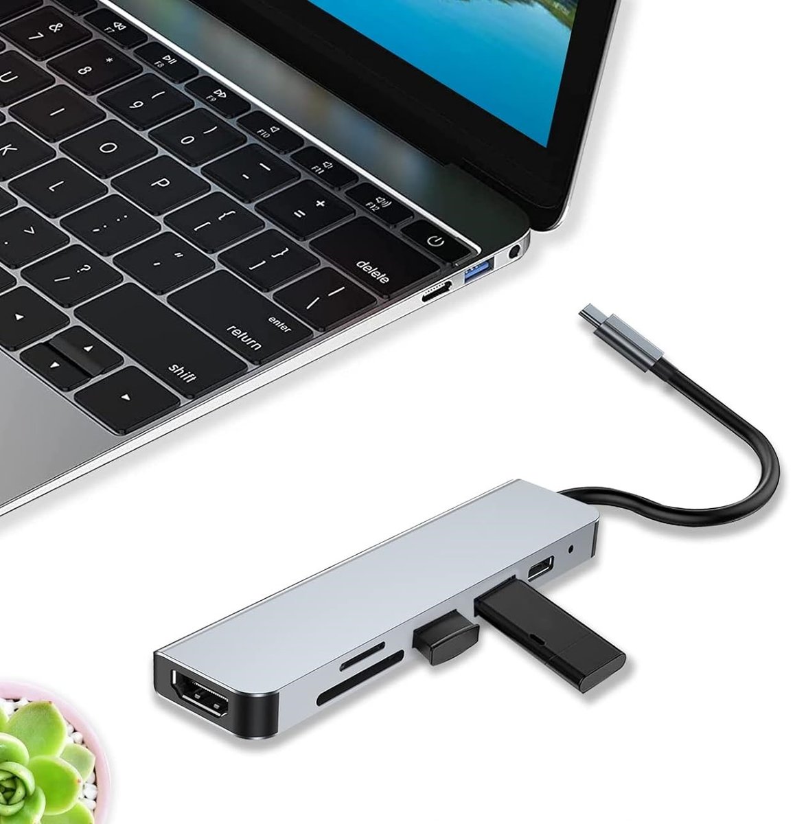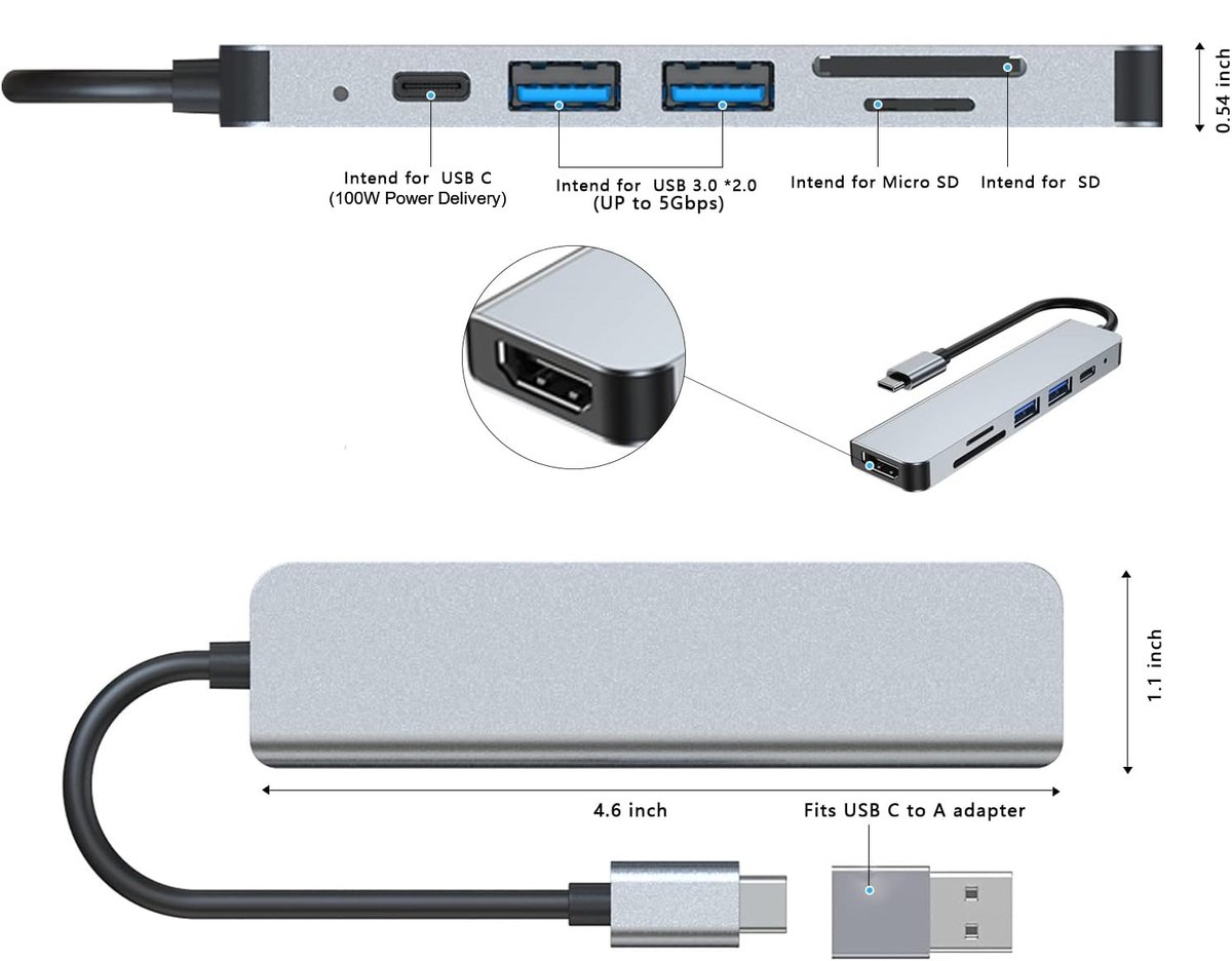 ♨️Hub 6w1, wysoka szybkość przesyłu danych - USB 3.0 do 5 Gbps +HDMI + USB C 100W POWER + USB 3.0 + SD/TF♨️