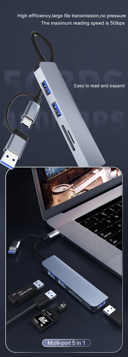♨️Hub 5w2, wysoka szybkość przesyłu danych - USB 3.0 do 5 Gbps +2 x USB 2.0 + SD/TF♨️