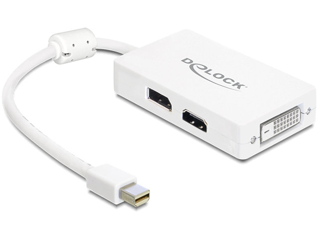 Ten adapter mini Displayport Delock umożliwia rozbudowę systemu o złącze Displayport, HDMI lub DVI, a także podłączanie różnych urządzeń, np. telewizora, projektora, monitora, itp. Z tym adapterem można używać tylko jeden monitor.