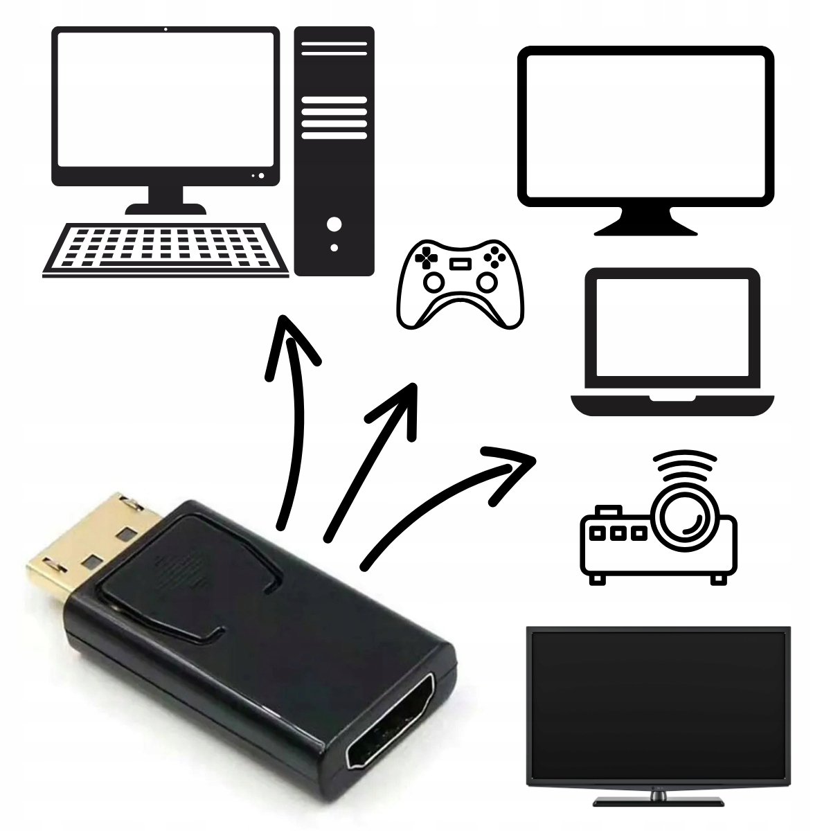 ADAPTER HDMI PRZEJŚCIÓWKA DISPLAYPORT DP DISPLAY PORT KONWERTER FULL HDAdapter DisplayPort do HDMI to praktyczna przejściówka, która umożliwia podłączenie urządzeń z wyjściem DisplayPort do ...