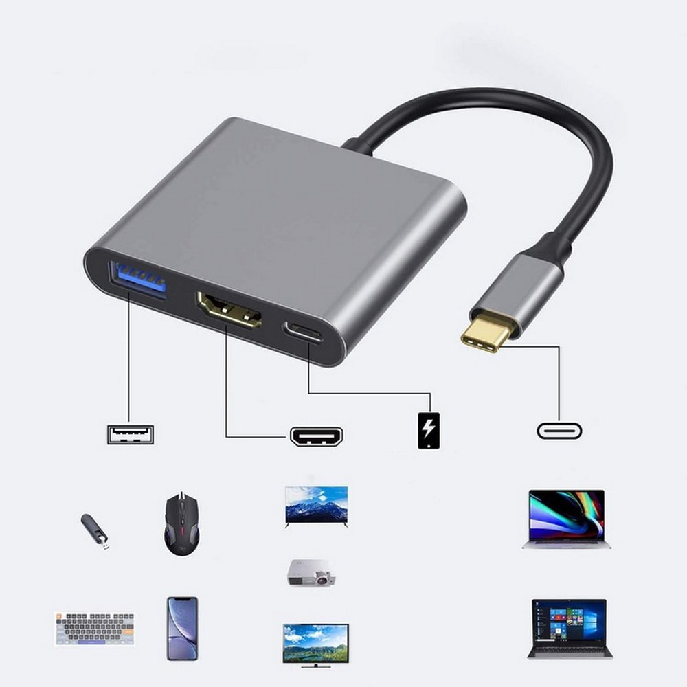 | Nazwa: | Adapter Hub 3w1 USB-C do HDMI 4K USB 3.0 MacBook (Space Gray) |