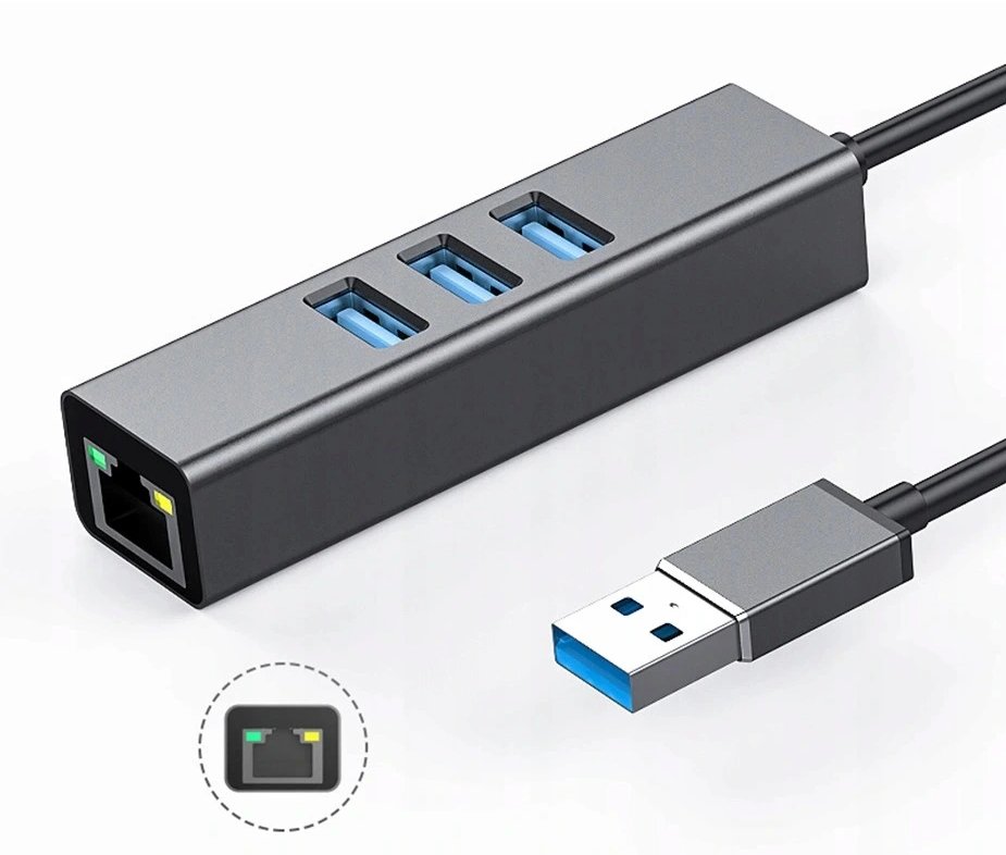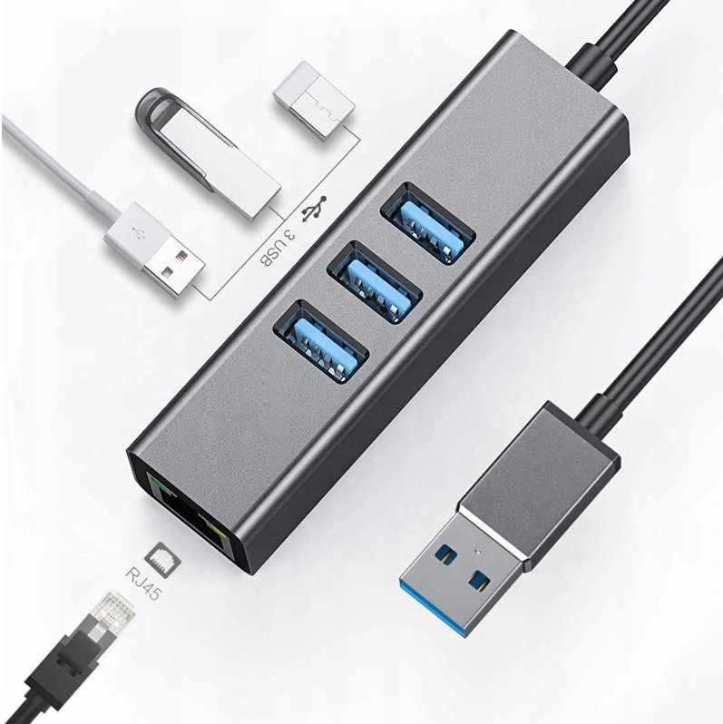 ADAPTER HUB 3x USB 3.0 Ethernet Gigabit 1000 Mbps
