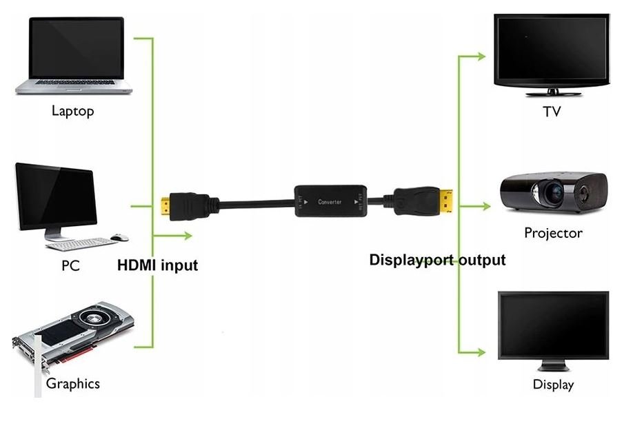 - Kierunek: z HDMI na Displayport