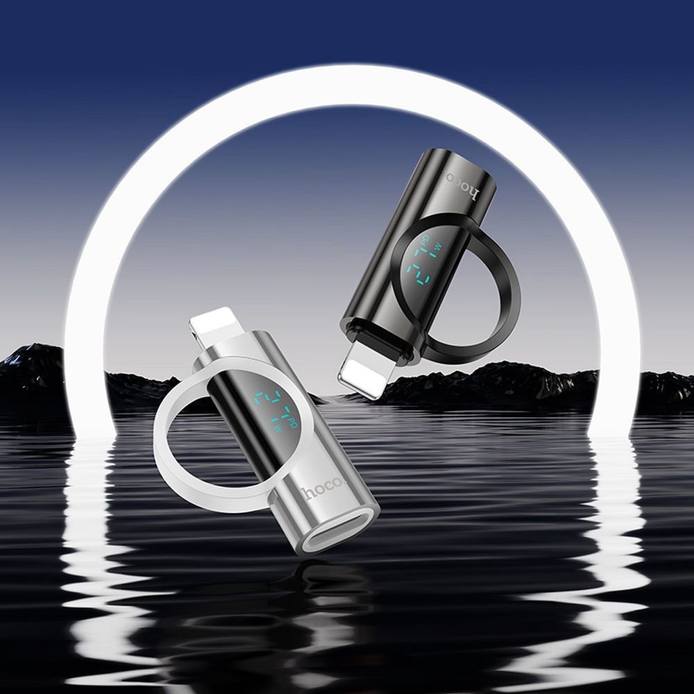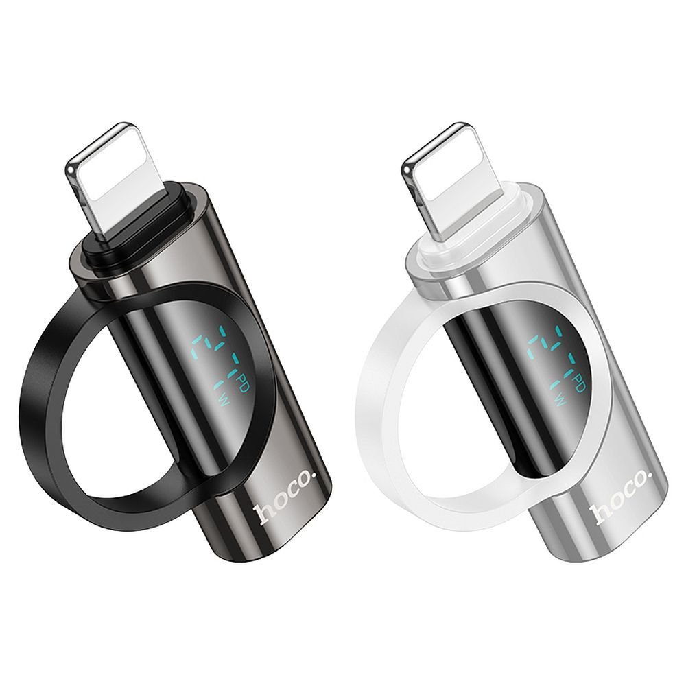 Adapter Hoco USB-C - Lightning z wyświetlaczem, wspiera ładowanie. Dzięki adapterowi urządzenie ze złączem Lightning można podłączyć do kabla ze złączem USB-C. Adapter wspiera ładowanie o mocy PD 27 ...