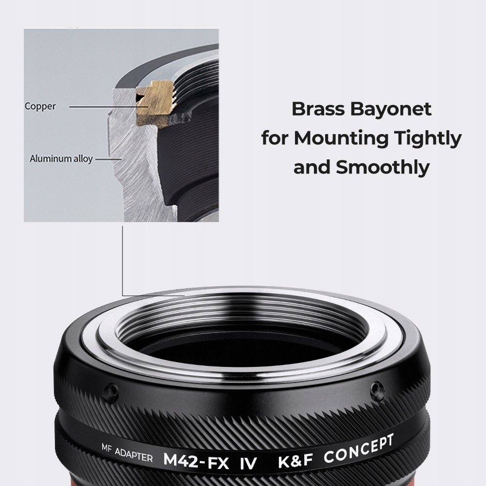 Adapter IV PRO K&F Concept M42 na FX Mocowanie M42 (obiektyw) na Fuji X (body) NOWA IV WERSJA K&F CONCEPT to lider jakości w produkcji adapterów fotograficznych. Posiada same ...