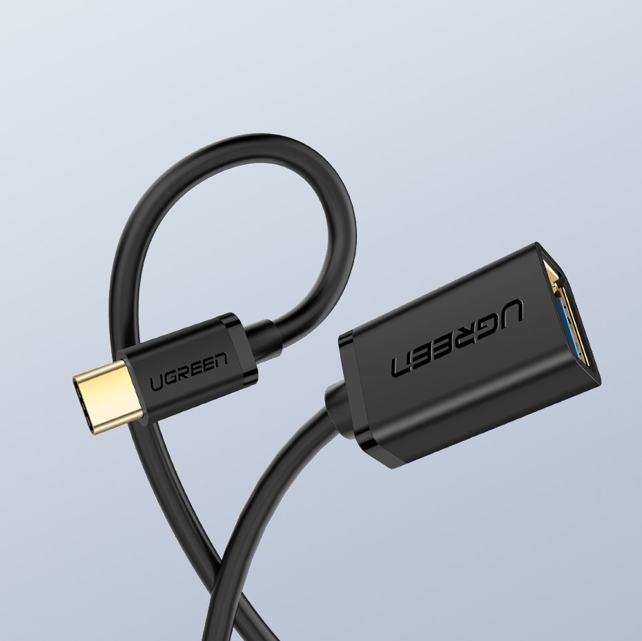 Adapter OTG UGREEN USB-A (żeński) do USB-C (męski) 3.0 to wysoka jakość, wytrzymałość, estetyka oraz wysoka prędkość transferu danych. Adapter wyposażony jest w kabel długości 15 cm. Wykonany został z odpornej na korozję miedzi ocynowanej, która wraz z wielowarstwową powłoką zabezpieczającą ogranicza utratę danych.