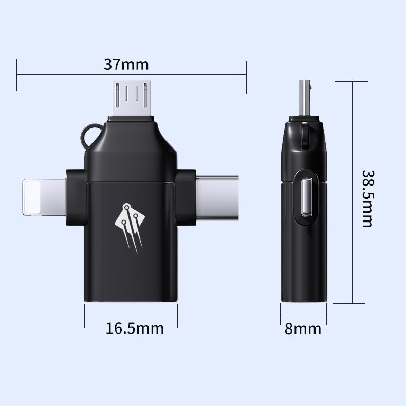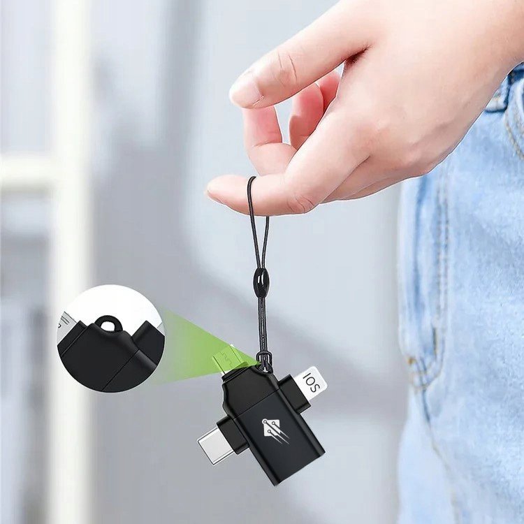 Adapter przejściówka z USB A USB-A 3.0 do USB C USB-C Lightning microUSB 3w1