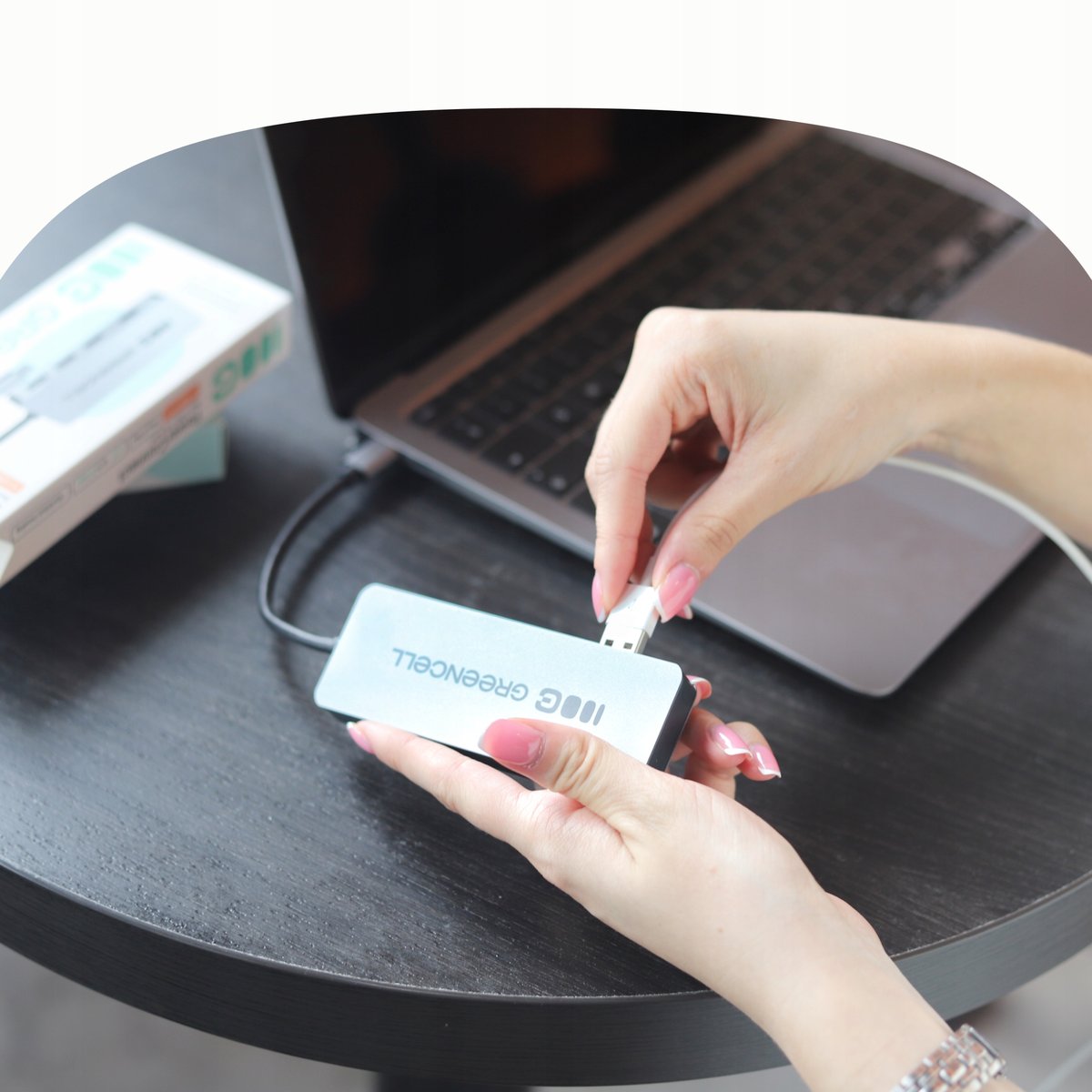 HUB Green Cell PowerConnect jest gotowy do pracy od razu po podłączeniu. Współpracuje z każdym komputerem z portem USB-C, także z najnowszymi modelami MacBooków z procesorami M3 i M4. Nie musisz niczego instalować.