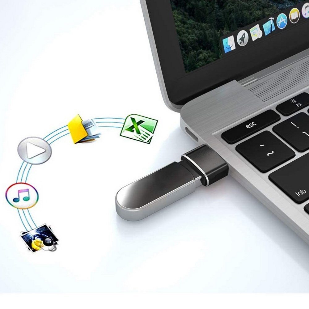 - Wysokiej jakości przejściówka z USB-C na USB-A